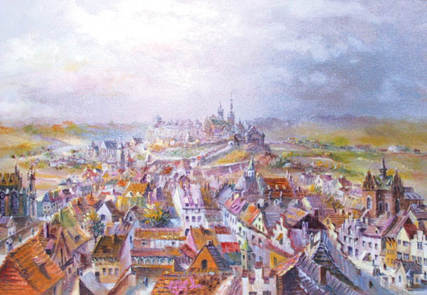 Widok z Kościoła Mariackiego na gotyckie Miasto |