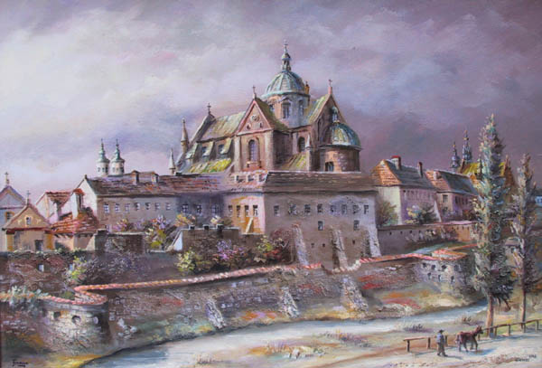 Widok od strony wschodniej z kościołem św. Piotra i Pawła |